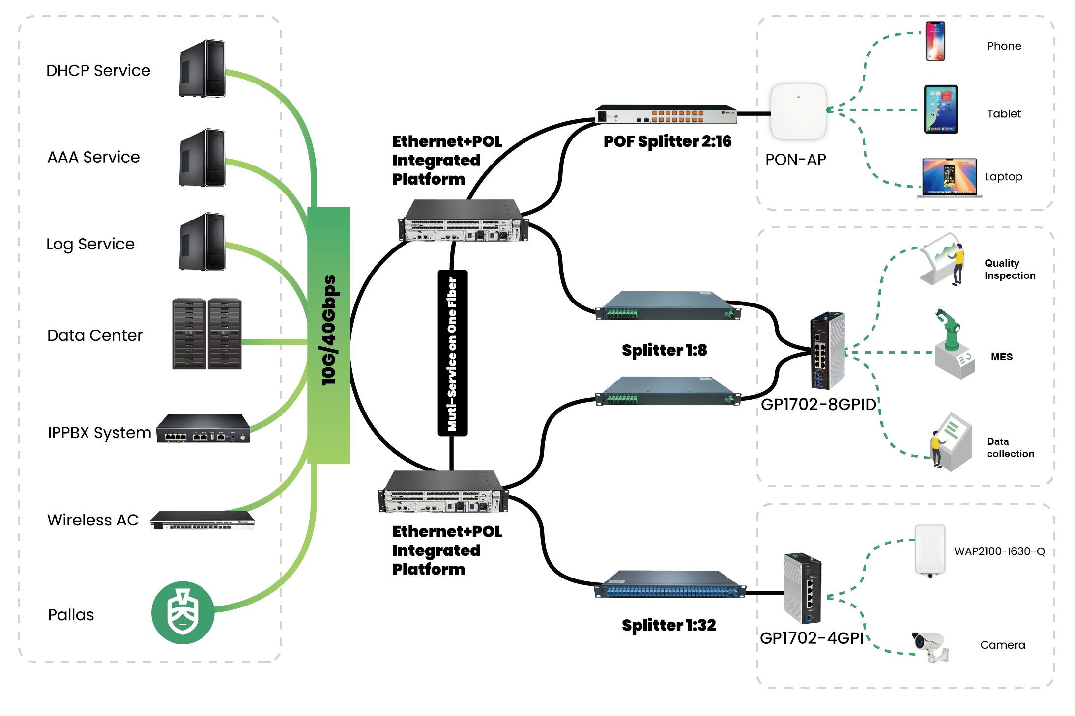 · GPON: downlink 2.5Gbps/uplink 1.25Gbps
