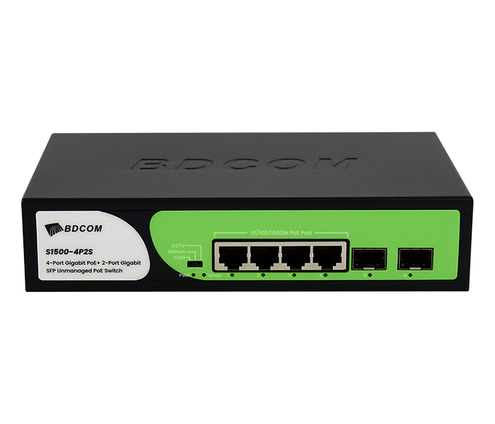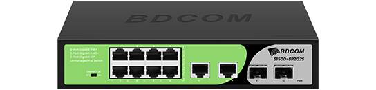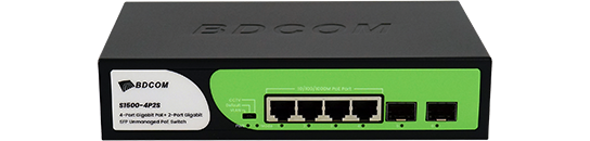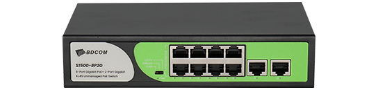 BDCOM S1500-P Series is a multi-functional unmanaged full-gigabit PoE switch with large buffer capacity. The product is primarily applied in access layer of CCTV and WLAN.